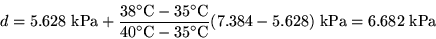 So, in our example, the desired saturated pressure d at 38C is: