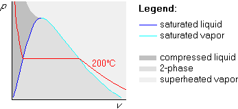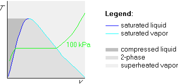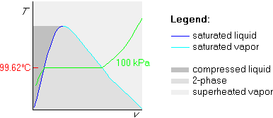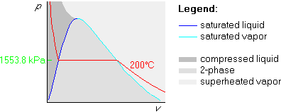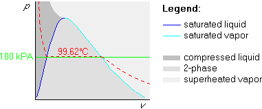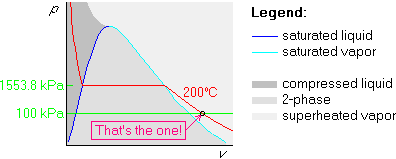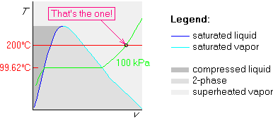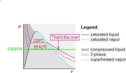 Let us try to redo the first example we did in the previous subsection. But now, we will use the pv-diagram instead of the Tv-one. We are again given that water is at a pressure p=100 kPa and at a temperature T=200C.