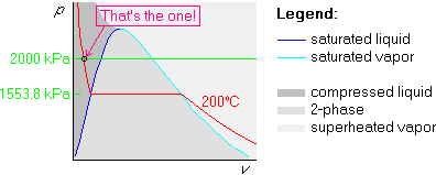 The first two steps are the same as above, but in the third step, we draw the 2000 kPa isobar above the horizontal part, since 200 kPa is greater than 1553.8: