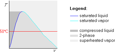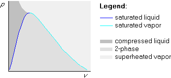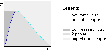 In the medium gray bell-shaped region, the water is a mixture of saturated liquid and saturated vapor. We will therefor call it the two-phase or saturated region.