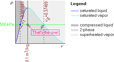 Example 2: p=500 kPa and v=0.1 m3/kg