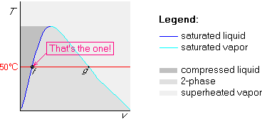 Since the temperature is again 50C, we can use the same graph as above and simply add the 5 kPa isobar. Since 5 kPa is less than 12.35 kPa, we draw it below that isobar: