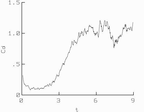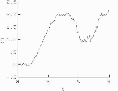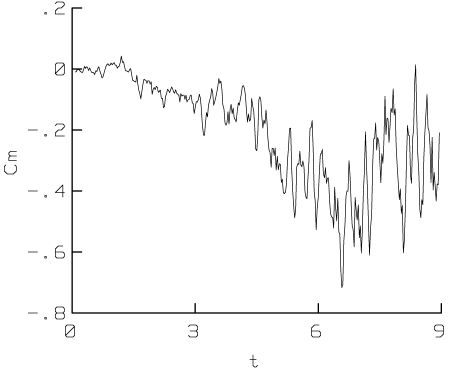 Here are the evolution of the lift, drag and moment coefficients: