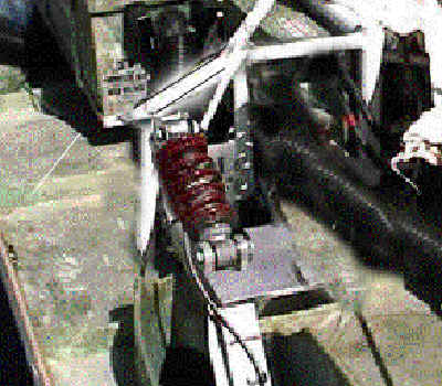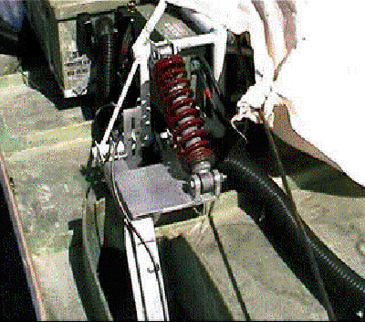 Below are some pictures of the ideas we had for the alignment and suspension. The two figures directly below show what changes we proposed to the chassis and the control arm. To minimize the moment created from the misalignment of the shock and the vertical force from the tires we wanted to align the shock with the force. This alignment was originally part of the first design but due to time constraints the chassis had to be modified in order to keep it from scrubbing the body also. Figure 1 shows the current set-up and Figure 2 shows the proposed changes.