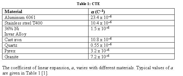 The coefficient of linear expansion, a, varies with different materials. Typical values of a are given in Table 1 [1 803-806].
