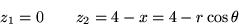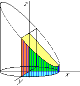 The region inside x2+y2=9 is the inside of a cylinder of radius 3 around the z-axis. The equation x+z=4 describes a plane through the y-axis under 45 degrees with the x-axis: