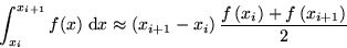 Trapezium rule for an interval from x=xi to xi+1: