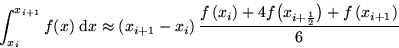Simpson rule for an interval from x=xi to xi+1: