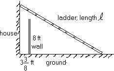 Asked: What is the length of the shortest ladder that can reach the house (over the free standing wall).