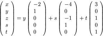 Hence z=-s+t and x=-2y-4s+3t, or