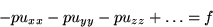 ut - (p ux)x - (p uy)y - (p uz)z + q u = f