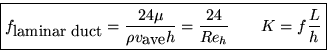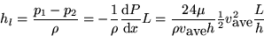 For the developed two-dimensional duct flow in the previous subsection, the head loss over a distance L of the duct is: