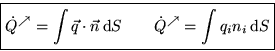 The heat flux per unit area is called the heat flux vector .The total heat flowing out of a volume V per unit time is: