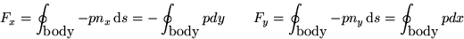 The direct way to find the force on the body is to integrate the pressure forces over the surface: