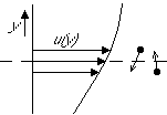 decreasing the x momentum above the broken line. The fluid particles