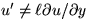 continuity, u'x + v'y = 0, so assuming that there is no strong