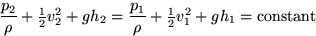 where hl is the head loss, the effect of irreversible dissipation of energy. Also, is the average kinetic energy per unit mass of the fluid at the cross section; as long as the flow is uniform at the cross section. For the developed duct with the parabolic profile, . For laminar pipe flow, . For turbulent flows, is usually not very far from 1. Finally, p and h are the average pressure and height of the cross section.