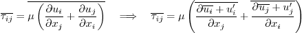 Reynolds averaged equations can be found by averaging the Navier Stokes equations. In doing so, note that the average of a fluctuation (prime) quantity is always zero, and that averaging an already averaged (bar) quantity leaves the averaged quantity unchanged. Also note that averaging is a linear operation that commutes with addition and differentiation.