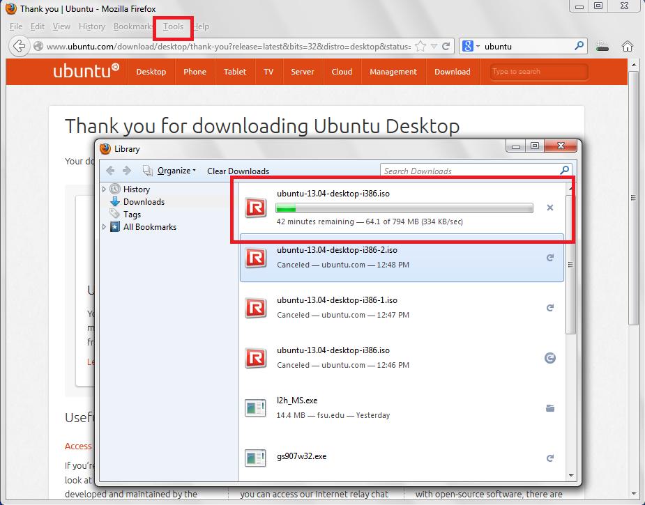 click "Downloads". As you see, the downloads were being performed OK.