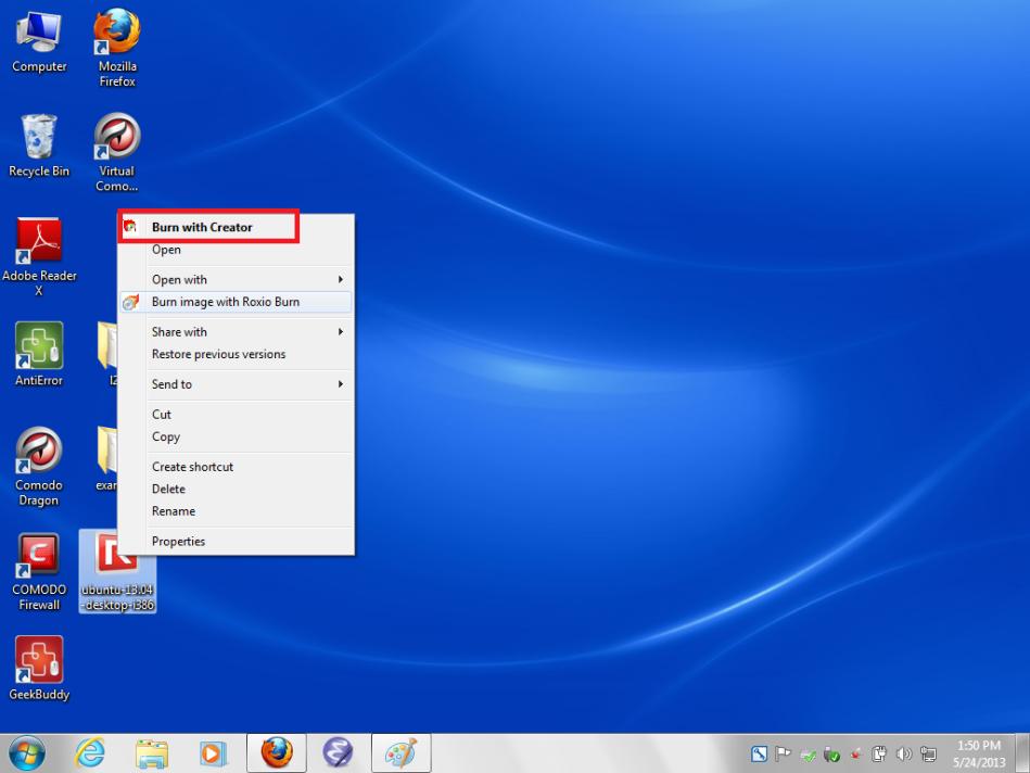 find the complete Ubuntu iso on your desktop. Right-click it.
