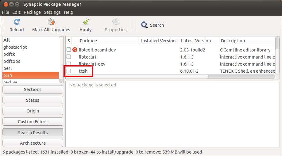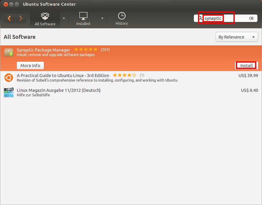 In the search box, type "synaptic". Synaptic Package Manager should show