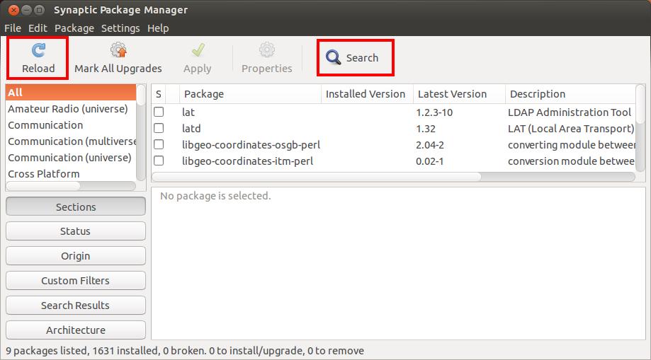 Synaptic opens. Click "Reload", just to be sure. (Actually, I forgot.)