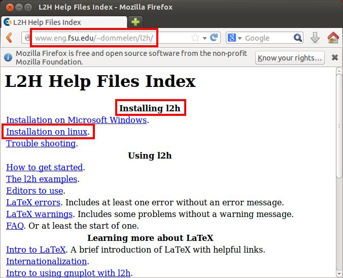 you need to run LaTeX and l2h under Ubuntu 13.04. It includes the