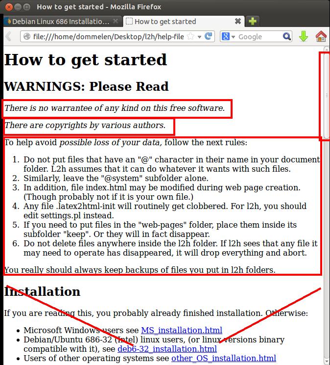 latex2html that comes with l2h is 100% reliable, I could not function.