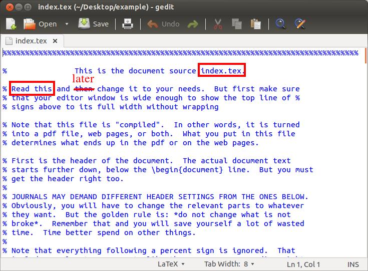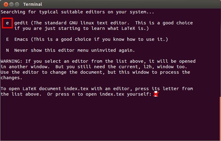6. Use the "\" key in the l2h menu to re-enter gedit. Read through
