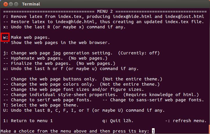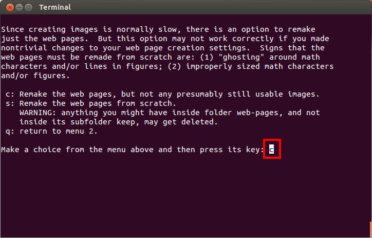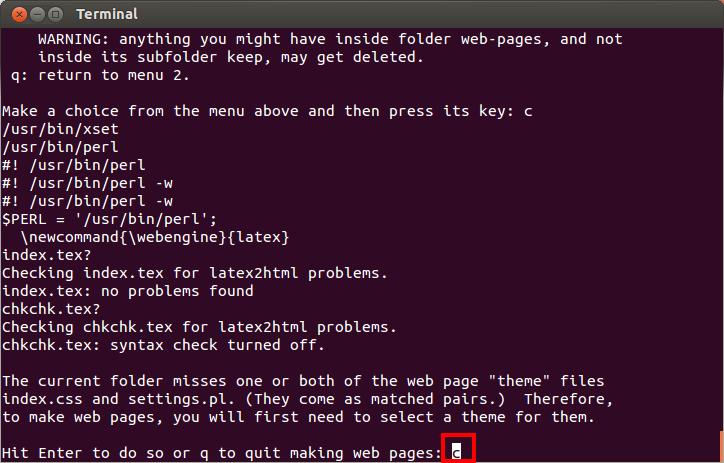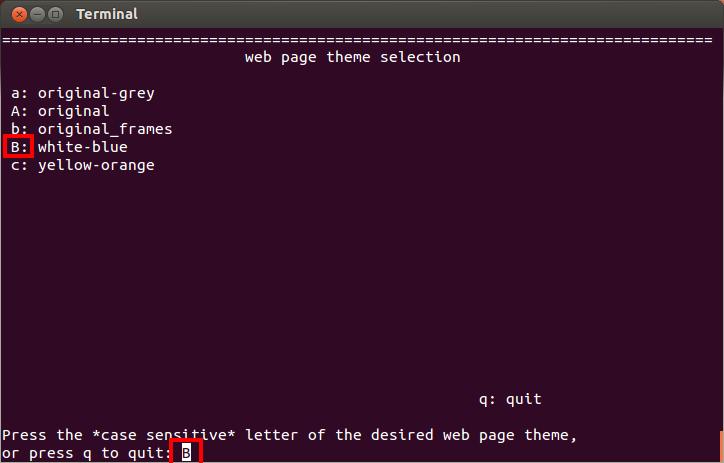 Hit "c" or just Enter to proceed to the web page theme selection.